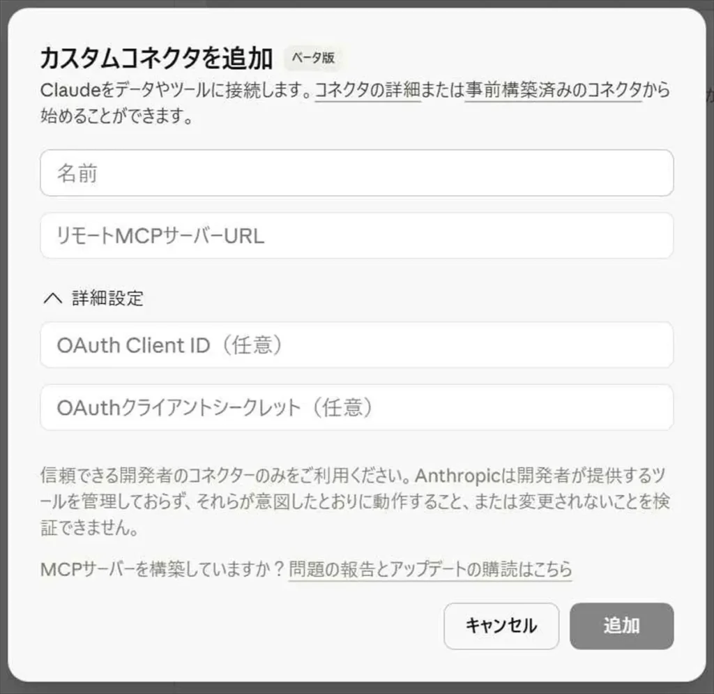 最初の試み:CoworkのカスタムコネクタにURLを貼る