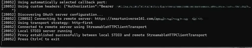 この方法ではうまくいきません。セキュリティ面でも不利(トークンがURLに露出する)なので、ここはあきらめてClaude Desktopの設定ファイルを直接編集する方法に切り替えます。